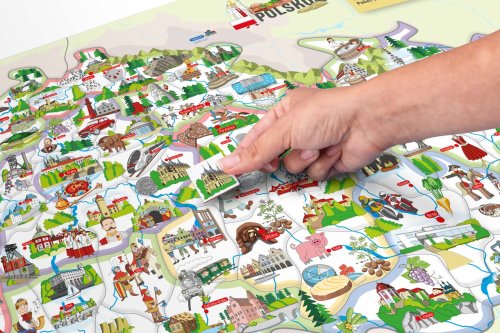 Díky obrázkům umístěným na každém dílku si děti ihned uvědomí, co je pro každý okres charakteristické Co se kde pěstuje, vyrábí, těží, kde jaká zvířata žijí, event., kde se jaká stavba, budova, hrad či zámek nachází S kompletně poskládanou mapou si pak s rodiči nebo kamarády zahrají hru, která bystří smysly a trénuje postřeh Design a kresby pocházejí od českých návrhářů