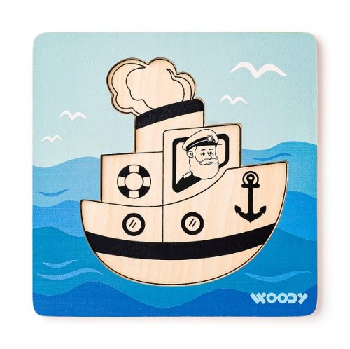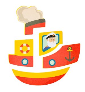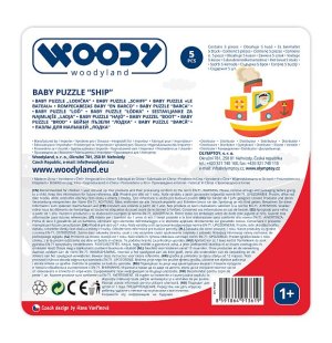 Masivní puzzle pro nejmenší děti Složeno z pěti velkých kousků, které se dají snadno uchopit Na základně hrací desky vytištěna černobílá kresba Ta usnadní orientaci a správné poskládání obrázku Design pochází z dílny českého výtvarníka