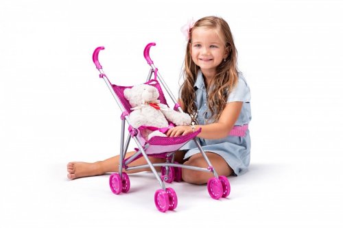 Design kočárku s jednorožcem reaguje na aktuální módní trend Golfky jsou vyrobeny z kombinace materiálů látka, kov a plast Velmi jednoduchý mechanismus umožňuje skládání a opětné rozkládání golfek Tato hračka je doporučena pro holčičky, které si rády hrají a vžívají se do role dospělých maminek Hra podporuje představivost, rozvíjí sociální cítění, paměť a hrubou motoriku