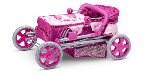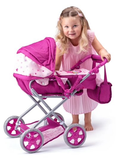 Design kočárku s jednorožcem reaguje na aktuální módní trend Tento kočárek je doporučen pro holčičky, které si rády hrají a vžívají se do role dospělých maminek Hra podporuje představivost, rozvíjí sociální cítění, paměť a hrubou motoriku Kočárek pro panenky je vyroben z kombinace materiálů látka, kov a plast Jeho montáž je jednoduchá, bez šroubování Návod k montáži naleznete uvnitř výrobku Součástí výrobku je přenosná korbička na miminko a síťovaný košík