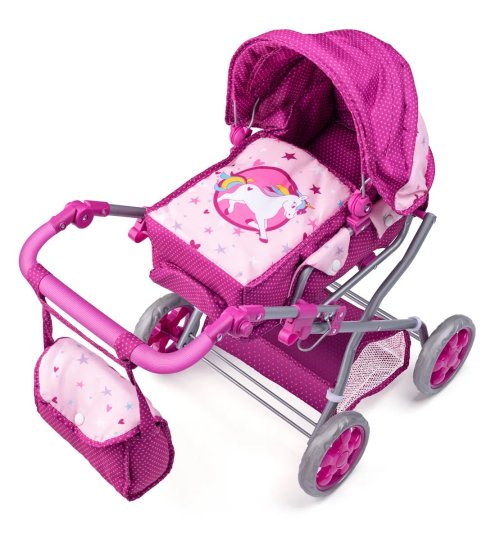 Kočárek pro panenky WOODY Dětský kočárek Jednorožec