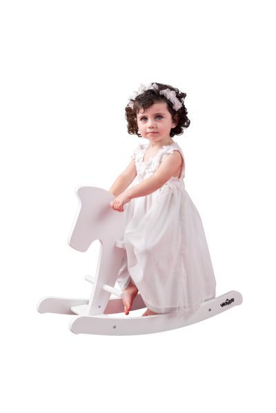 Elegantní houpací bílý koník neurazí interiér žádného dětského pokojíčku Svými čistými liniemi splňuje všechny parametry moderní hračky Jeho konstrukce je čistá a funkční Tvar houpadel umožňuje bezpečné houpaní, podpěrky nohou pak pohodlí a oporu při rozhoupání koníka Samozřejmostí jsou i držadla pro ruce