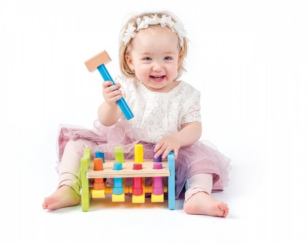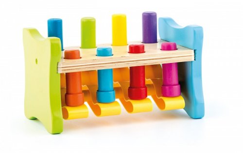 Nová vylepšená varianta klasické dřevěné zatloukačky Tentokrát v kombinaci dřevo/plast Kromě nově použité kombinace materiálu a barev je zde novinkou hlavně systém, na kterém tato zatloukačka funguje Její kolíky jsou v párech proti sobě připevněny na plastovou "kolíbku" Zatlučením kolíku na jedné straně se dostane druhý kolík automaticky nahoru a je opět připraven k protlučení