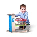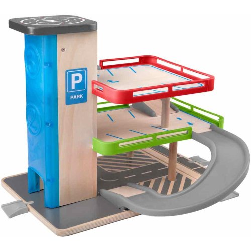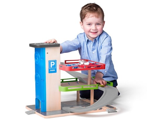 Dřevěná garáž s výtahem je skvělá zábava pro malé motoristy Jednoduše zajeďte se svým autíčkem do výtahu, nechte se vyvézt do nejvyššího patra a zaparkujte nebo si sjeďte o patro níže Garáž má tři úrovně nastavitelnosti výtahu Výtah lze jednoduše mechanicky posouvat nahoru a dolů díky otočnému kolečku
