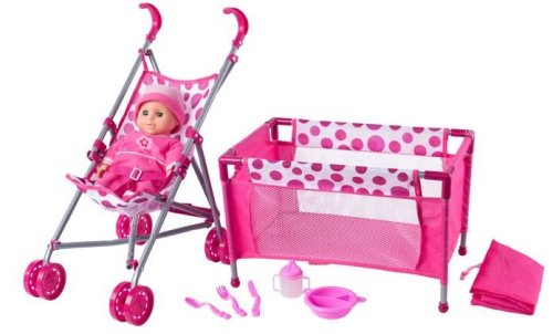 V tomto setu najdou děti hned 4 hračky: Mrkací panenku se zvuky Nádobí ke krmení panenky Golfky, jejichž jednoduchý mechanismus umožňuje rychlé skládání Postýlku