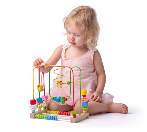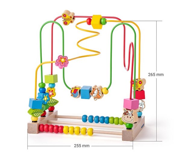 Motorická hračka pro nejmenší Dítě posouvá korálky po spirálách a ohybech silné drátěné konstrukce Rozvíjí jemnou motoriku