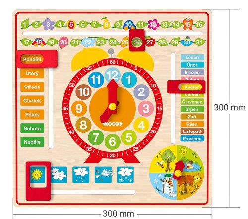 S touto hračkou se dítě učí používat kalendář Ručně si nastavuje hodiny, datum, den v týdnu, roční období a počasí
