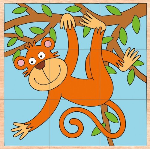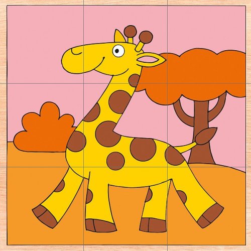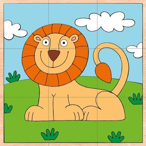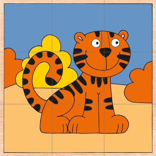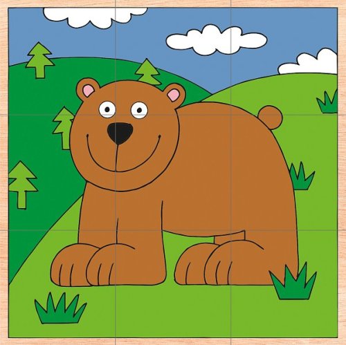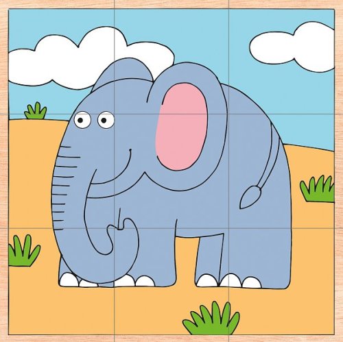 Klasický dětský kubus tvořený kostkami Obrázky pochází z dílny českého výtvarníka Pro snadnější složení jsou barevně odlišena pozadí jednotlivých obrázků I tímto je hračka přizpůsobena věku dítěte