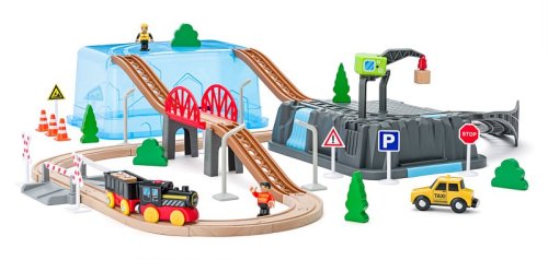 Plastový box je nejen praktický pro uskladnění vláčkodráhy, ale zároveň je po sestavení její nedílnou součástí Provoz vláčkodráhy probíhá ve více výškových úrovních Na kopečky šplhá mašinka s ozubenými kolečky po vroubkovaných kolejničkách a stejně bezpečně po nich i sjíždí Na jednom z kopečků je umístěn jeřáb s magnetem, který nakládá na vagónky náklad vybavený druhou polaritou magnetu Vláčkodráha je vyrobena v kombinaci materiálů dřevo/plast
