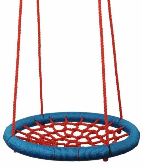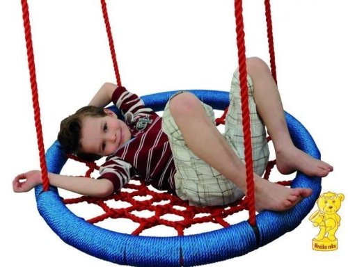 Houpačka se může používat pouze v sedě nebo v leže. Nosnost houpačky je maximálně 100 kg nebo pro 1-2 děti. Průměr houpacího kruhu je 85 cm. Na sedák jsou použity textilní popruhy. Rám je kovový, potažený provazem.