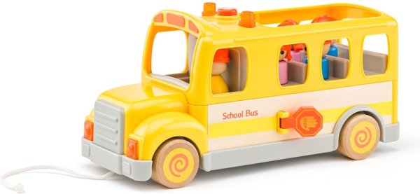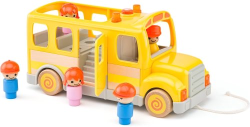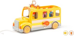 Školní autobus je vyroben v kombinaci kvalitního plastu a dřeva Obsahuje figurku řidiče a 4 dětí Má otevírací dvířka a vyklápěcí značku "STOP" pro bezpečný výstup a přechod silnice Zmáčknutím tlačítka na kabině se aktivuje světlo a zvuk Šňůrka na tahání Vhodné pro děti od 18 měsíců Provoz na baterie 3x AG13,LR44 1,5V (součást balení)