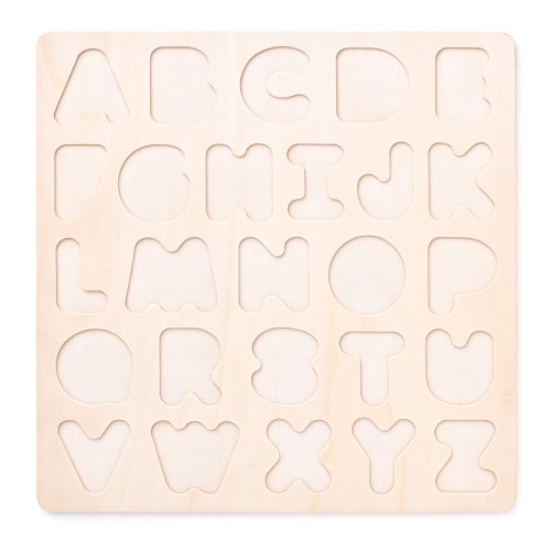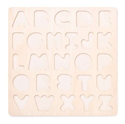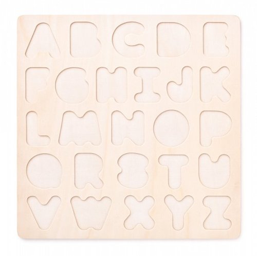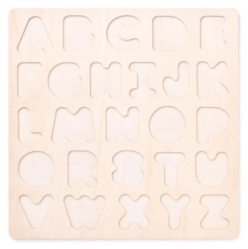 Dřevěná barevná vkládačka bez úchytek pro děti pro první seznamování s písmenky. Jednotlivé dílky (písmena) se umisťují do vyfrézovaných obrysů na dřevěnou desku. Vhodné pro děti od 3 let.