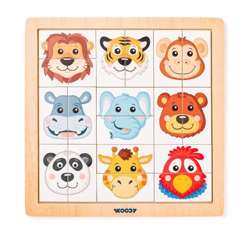 Roztomilé dřevěné puzzle s motivem zvířecích hlav