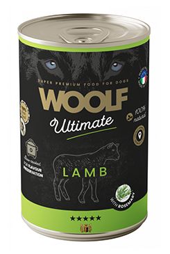 Kompletní krmivo pro dospělé psy, vlhké krmivo s jehněčím masem a rozmarýnem.