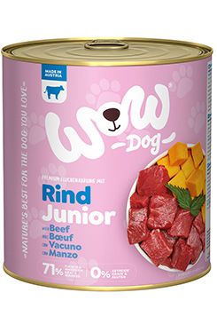 WOW Hovězí s dýní je kompletní mokré krmivo pro štěňata a rostoucí psy všech plemen se 71% obsahem masa a vnitřností od předního rakouského výrobce. Maso je doplněno zeleninou, bylinkami z Alp a vysoce kvalitním lněným olejem. Konzervy jsou ručně plněné v rodinné rakouské firmě z místních, většinou alpských, surovin ze zdravé přírody.