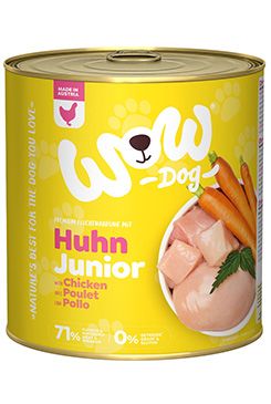 WOW Kuřecí s karotkou je kompletní mokré krmivo od předního rakouského výrobce vhodné pro štěňata a rostoucí psy všech plemen ve věku od 2 do 12 měsíců se 71% obsahem masa a vnitřností. Maso je doplněno zeleninou, bylinkami z Alp a vysoce kvalitním lněným olejem pro skvělý start do dlouhého života, pro zdravé kosti a klouby. Konzervy jsou ručně plněné v rodinné rakouské firmě z místních, většinou alpských, surovin ze zdravé přírody.