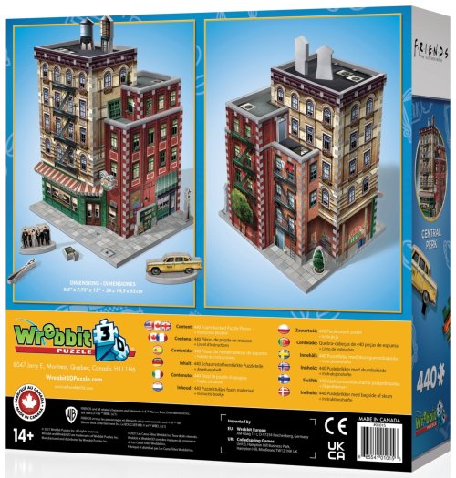 Připomeňte si kultovní partu šesti přátel a kavárnu, kde trávili spoustu společného času. Úžasná replika Central Perku je vyrobena z 440 dílků a potěší každého milovníka skládání a seriálu Přátelé. Do stavby se může zapojit celá rodina, výsledek rozhodně stojí za to. Roztřiďte, složte a vytvořte 3D model. Trojrozměrné puzzle WREBBIT kombinuje výzvu a zážitek. Puzzle se skládá podle referenčních obrázků na krabici a černobílého obrázkového návodu. Díky důmyslně navrhnutému tvaru a tloušťce dílků drží u sebe bez nutnosti lepení.