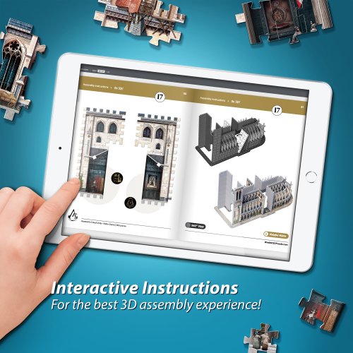 Poznámka: Dílky označené červenými tečkami byly nezbytné pouze pro výrobu, nejsou však součástí samotného 3D puzzle. Můžete je proto z krabice rovnou vytřídit, odložit stranou a uschovat si je až do dokončení skládačky. Proč? Protože během třídění i to nejbystřejší oko přehlédne správný dílek, který omylem skončí mezi červeně tečkovanými. Rozměr složeného puzzle cca 56 x 25,5 x 36,8 cm