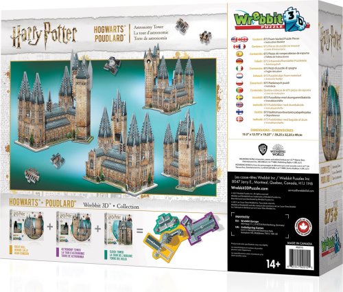 Sova ti nepřinesla pozvánku do Bradavické školy čar a kouzel? Nemusíš zoufat, postav si vlastní Bradavice doma! Poskládej si Astronomickou věž , nejvyšší věž celého bradavického hradu. Mladé čarodějky a kouzelníci zde mají hodiny astronomie, jinak je přístup do věže přísně zakázán. To však nezabránilo Harry Potterovi, aby zde čelil smrtijedům, když chtěli obsadit Bradavickou školu čar a kouzel... Roztřiďte, složte a vytvořte 3D model. Trojrozměrné puzzle WREBBIT kombinuje výzvu a zážitek. Puzzle se skládá podle referenčních obrázků na krabici a černobílého obrázkového návodu. Díky důmyslně navrhnutému tvaru a tloušťce dílků drží u sebe bez nutnosti lepení.