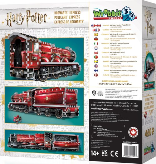 Vlak do školy čar a kouzel v Bradavicích je připraven k odjezdu! Poskládej si Bradavický express , který je vždy přistaven u proslulého nástupiště 9 ¾ na londýnském nádraží King's Cross, odkud odjíždějí všichni studenti této školy. Roztřiďte, složte a vytvořte 3D model. Trojrozměrné puzzle WREBBIT kombinuje výzvu a zážitek. Puzzle se skládá podle referenčních obrázků na krabici a černobílého obrázkového návodu. Díky důmyslně navrhnutému tvaru a tloušťce dílků drží u sebe bez nutnosti lepení.
