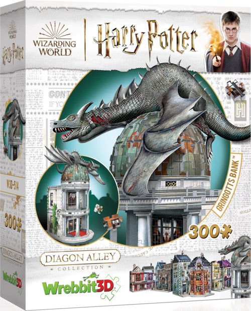 Poskládej si model Gringottovy banky z kouzelného světa Harryho Pottera. Roztřiďte, složte a vytvořte 3D model. Trojrozměrné puzzle WREBBIT kombinuje výzvu a zážitek. Puzzle se skládá podle referenčních obrázků na krabici a černobílého obrázkového návodu. Díky důmyslně navrhnutému tvaru a tloušťce dílků drží u sebe bez nutnosti lepení.