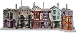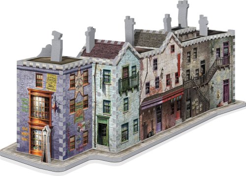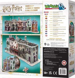 Vše pro studium na Bradavické škole čar a kouzel nakoupíš v Příčné ulici! Poskládej si část kouzelnického světa Harryho Pottera Příčnou ulici, kde se nachází starý obchod s hůlkami pana Oliwandera, knihkupectví Krucánka a Kaňoury, Prvotřídní potřeby pro famfrpál, nebo Kratochvílné a kouzelnické kejkle specialita George a Freda Weasleových. Roztřiďte, složte a vytvořte 3D model. Trojrozměrné puzzle WREBBIT kombinuje výzvu a zážitek. Puzzle se skládá podle referenčních obrázků na krabici a černobílého obrázkového návodu. Díky důmyslně navrhnutému tvaru a tloušťce dílků drží u sebe bez nutnosti lepení.
