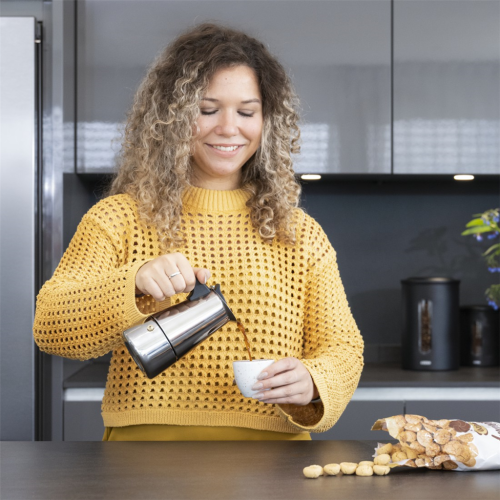 • rukojeť z PE plastu je odolná vůči teplu, při přípravě kávy se nezahřeje a pohodlně sedne do ruky