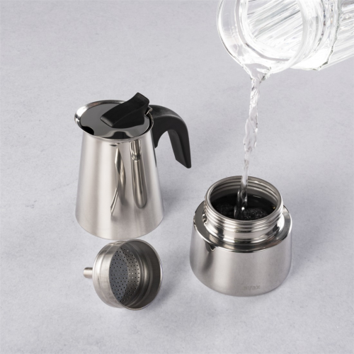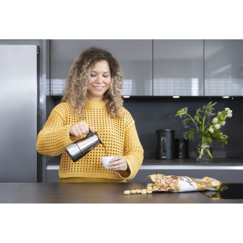 - klasická italská příprava kávy (espresso) - kompaktní moka konvička vhodná pro použití na všech typech sporáků, včetně indukčních varných desek - elegantní provedení z nerezové oceli - nádoba na vodu …