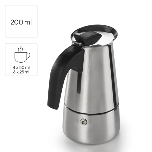 • nádoba na vodu s objemem 200 ml; ideální pro 4 šálky po 50 ml nebo 8 espresso káv po 25 ml