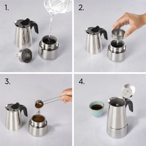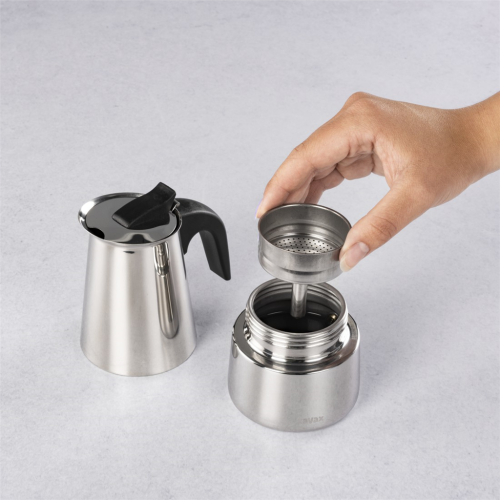 • kompaktní moka konvička vhodná pro použití na všech typech sporáků, včetně indukčních varných desek
