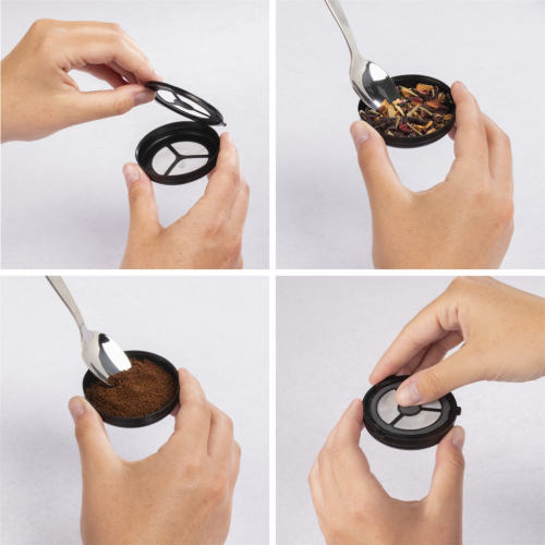 2. Naplňte kapsli mletou kávou nebo čajovou směsí podle chuti.