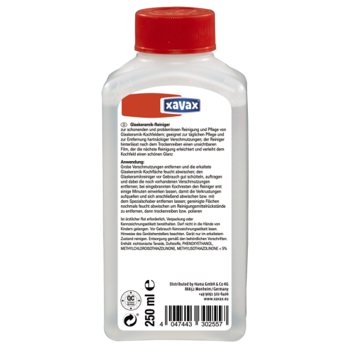 Odstraňte hrubé nečistoty (např. škrabkou) a varnou desku setřete vlhkou utěrkou. Pořádně protřepejte čisticí prostředek. Naneste na desku a očistěte zbytky nečistot. Na připálených zbytcích jídel nechejte chvíli působit, aby zaschlá vrstva změkla a teprve potom odstraňte. V případě potřeby použijte speciální škrabku na sklokeramické desky. Odstraňte zbytky čisticího prostředku vlhkou utěrkou. Následně utřete dosucha a případně vyleštěte (doporučujeme použít utěrky z mikrovlákna).