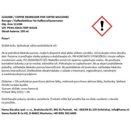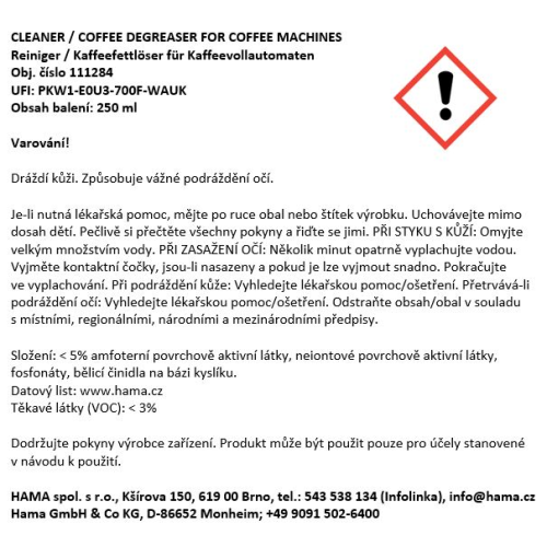 Tento přípravek není určený na čištění mléčných systémů ani kávových mlýnků v kávovarech nebo samostatných. Pro tyto systémy a zařízení třeba použít vhodné čistící prostředky, např. 111282 pro mléčné systémy, 111759 pro mlýnky.
