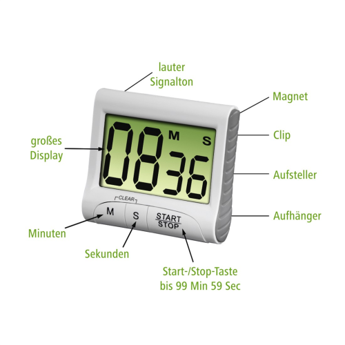 digitální kuchyňské minutky s funkcí odpočítávání (ideální pro přípravu steaků)