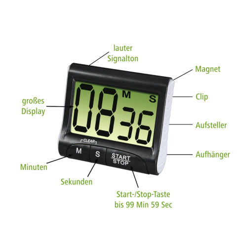 digitální kuchyňské minutky s funkcí odpočítávání (ideální pro přípravu steaků)