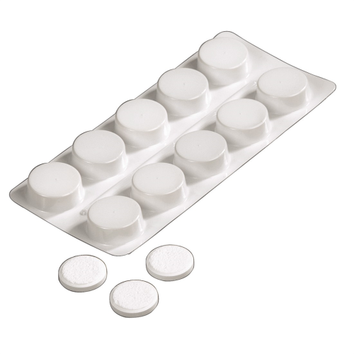 1 tableta na 1 litr vody. Zařízení naplňte vodou o teplotě 80°C a nechte působit 10-15 minut. Tekutinu vylijte a zařízení opláchněte čistou vodou.