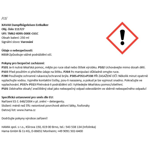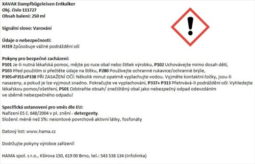 Xavax odvápňovací přípravek pro napařovací žehličky, 250 ml
