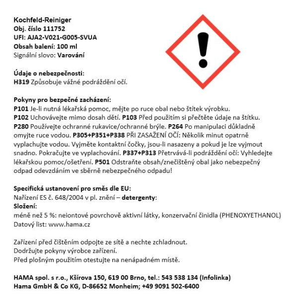 • obsah setu: čistič (100 ml), škrabka, utěrka z mikrovlákna