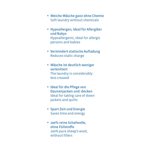 • měkký vlněný materiál pro méně hluku v porovnání s koulemi z umělé hmoty
