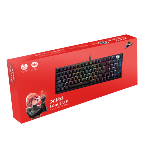 Herní klávesnice XPG SORCERER, která se může pochlubit 96% tvarovým faktorem, bezproblémově kombinuje kompaktnost s všestranností. Navržena ve formě těsnění, třívrstvého uchycení tlumící pěnou a spínači kláves vyměnitelnými za chodu přináší bezkonkurenční zážitek z psaní. Obsahuje vlastní spínače XPG Red Switch, které mají hladký POM dřík. SORCERER zajišťuje výjimečně hladký stisk kláves. Navíc jeho RGB na jednotlivé klávesy, řízené intuitivním softwarem PRIME, poskytuje uživatelům neomezené možnosti přizpůsobení.
