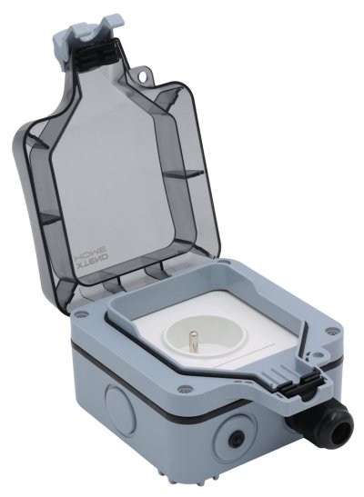 Zásuvka je vodotěsná a prachotěsná, včetně kabelové průchodky PG. Můžete ji tak umístit kdekoliv na zahradě či ve skleníku bez obav, že by došlo ke zkratu při dešti či zalévání.