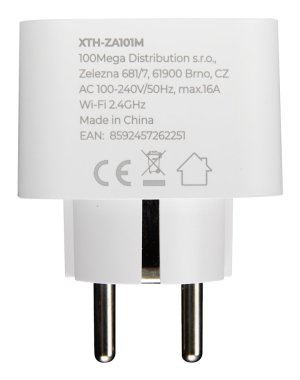 Chytrá Wi-Fi zásuvka sloužící k měření příkonu připojených zařízení a jejich zapínání či vypínání. Zásuvka funguje s aplikací Tuya Smart a podporuje i aplikace třetích stran Alexa hlasový asistent a Google domácí asistent.