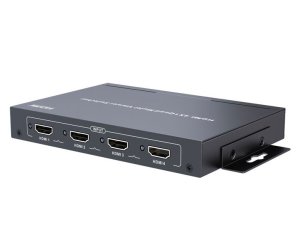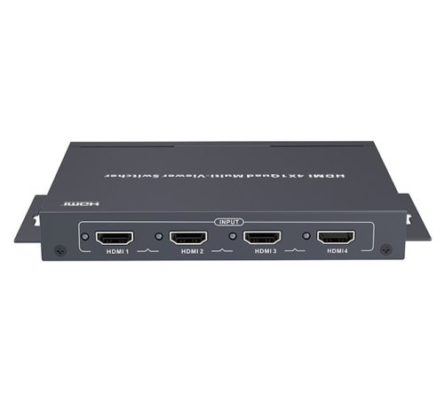 HDMI přepínač (multiviewer/kvadrátor) ze čtyř vstupů na jeden výstup, zobrazení všech vstupů na jednom HDMI výstupu. Rozlišení až 1080p, dálkový ovladač, podpora HDCP 1.3a, napájení DC 12 V.