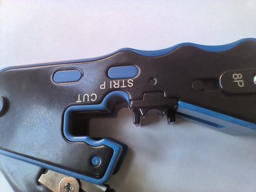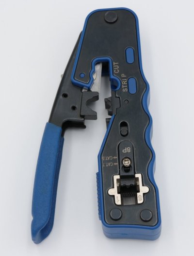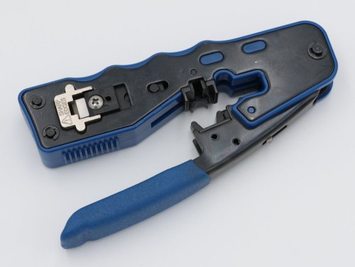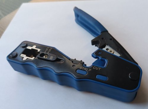 Krimpovací masivní kleště malých rozměrů, konektory (Pass Through UTP) RJ-45 Cat6, Cat5e, Cat7 i nový typ RJ-45 EZ, systéme odizoluj, zasuň, zacvakni a uřež/uřízni. Lze používat i na starý typ RJ-45, UTP/STP.