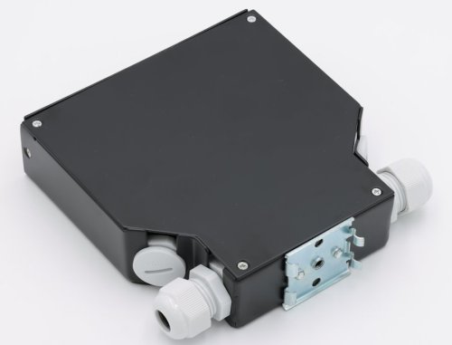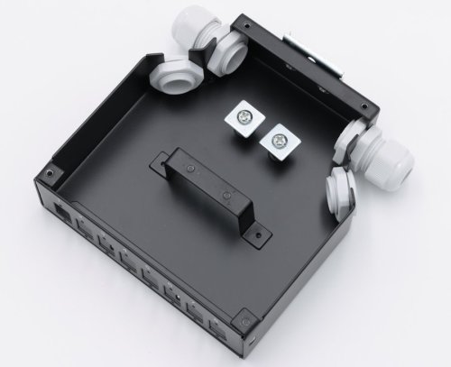 Malý kovový rozvaděč pro upevnění na DIN lištu. Dovoluje instalovat 8× SC simplex adaptér. Robustní kovové provedení, 4× vstup (2× zaslepený + 2× PG11). Kabel není nutno provlékat, lze i jen založit.