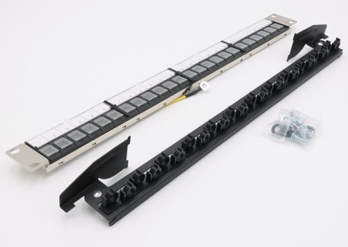 Patch panel 1U, 24 otvorů, velikost 19", neosazený, Cat5e/6/6a/7, vyvazovák s podporou uvázání kabelů.