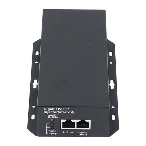 Výkonný PoE++ injektor s výkonem 90 W určený pro náročné síťové aplikace a zařízení vyžadující vysoký výkon.