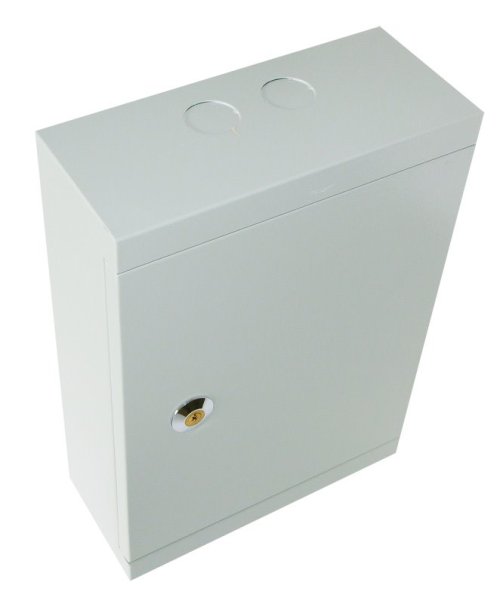 Univerzální kovový rozvaděč na zeď s DIN lištou.