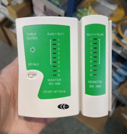 Základní ohmický tester s loopbackem. LED diody indikují propojení vodičů jak na těle testeru, tak na loopbacku. Generátor + loopback modul. Vypínač posuvný (DIP switch). Ochranné kožené pouzdro.