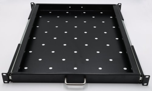 Výsuvná 550mm police určená pro montáž do stojanových rozvaděčů řady ECO a TELCO hloubky min. 800 mm, výška 1U, nezabírá místo na čelní stojně, nosnost 60 kg.